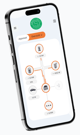 Met de slimme thuisbatterij van SmarttBatt sla je goedkope of zelf opgewekte zonne-energie op en gebruik je die wanneer de stroomprijs piekt. Zo bespaar je op je energierekening en ben je minder afhankelijk van het net.